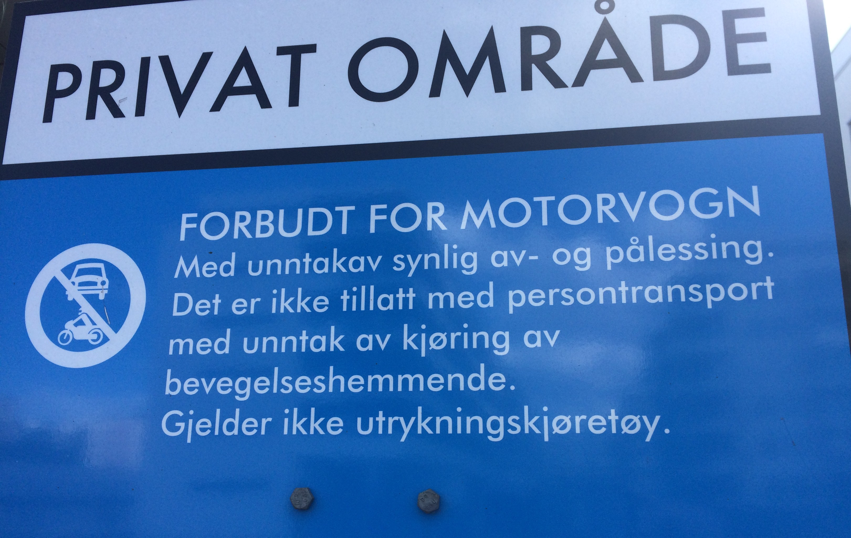 Biler og motorsykler mm ikke tillatt